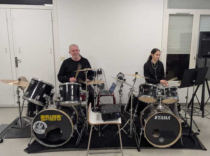 Je joue aussi du piano depuis huit ans avec Géraldine et il y a trois ans j’ai voulu essayer un deuxième instrument. J’ai choisi la batterie car mon grand frère jouait lui aussi de la batterie et ça m’a donné envie. J’avais aussi besoin d’améliorer mon rythme au piano !